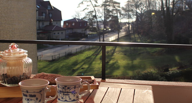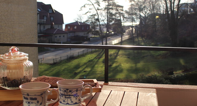und eine gemütliche, windgeschütze Süd-West- Loggia mit herrlichem Ausblick- für noch mehr Draußenzeit