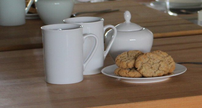 hier kann man gemütlich den Tag beginnen, sich über den kurzen Weg zum Strand freuen oder zu Ausflügen starten,